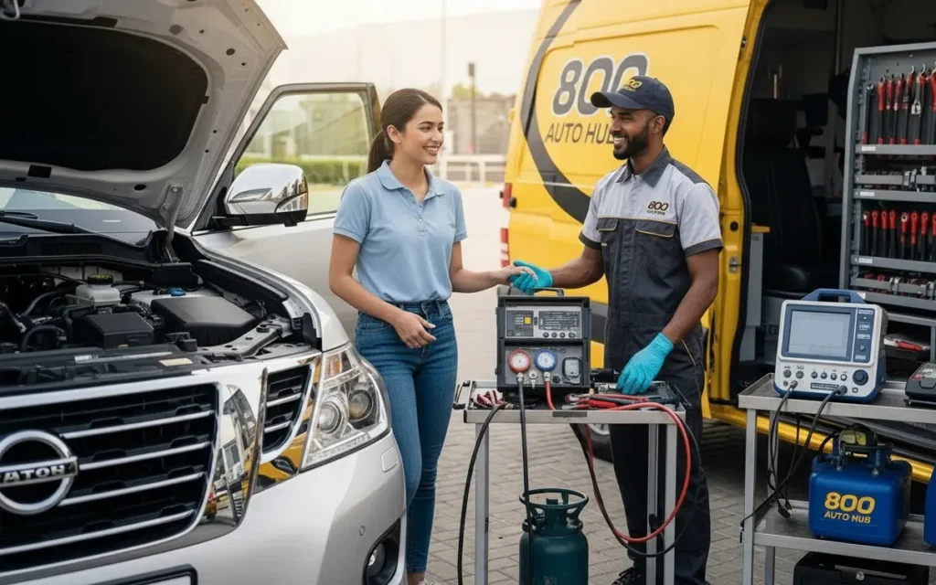800 Auto Hub provides car AC repair across the UAE, with both workshop and mobile on-site service options for maximum convenience.