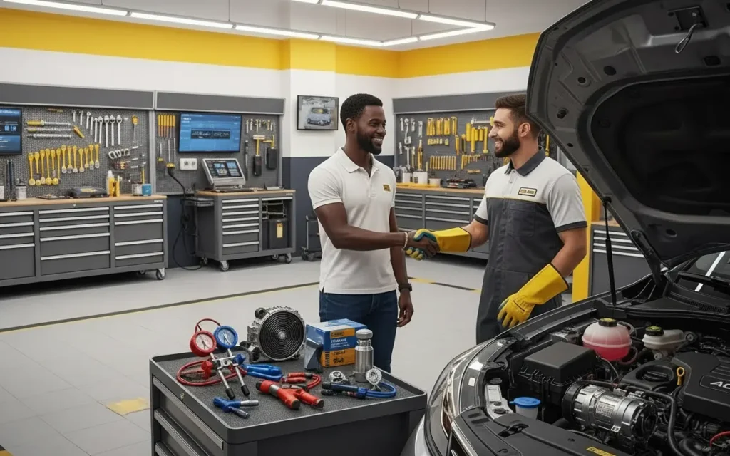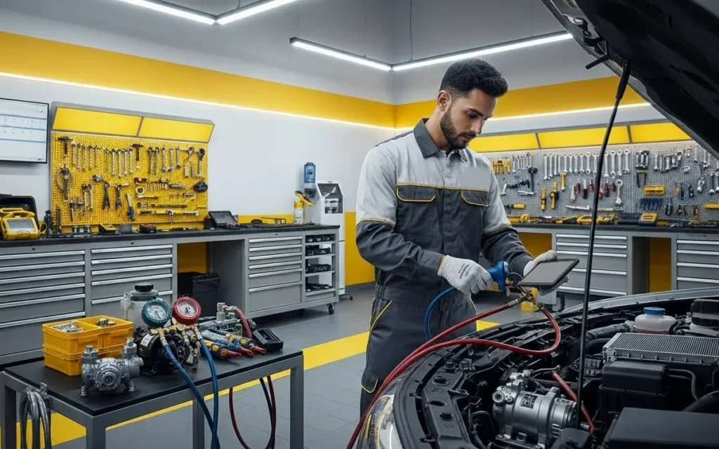 We deliver complete car air conditioner repair, AC system diagnostics, gas refill, and component replacement using genuine spare parts — available at our workshop or through mobile service across the UAE.